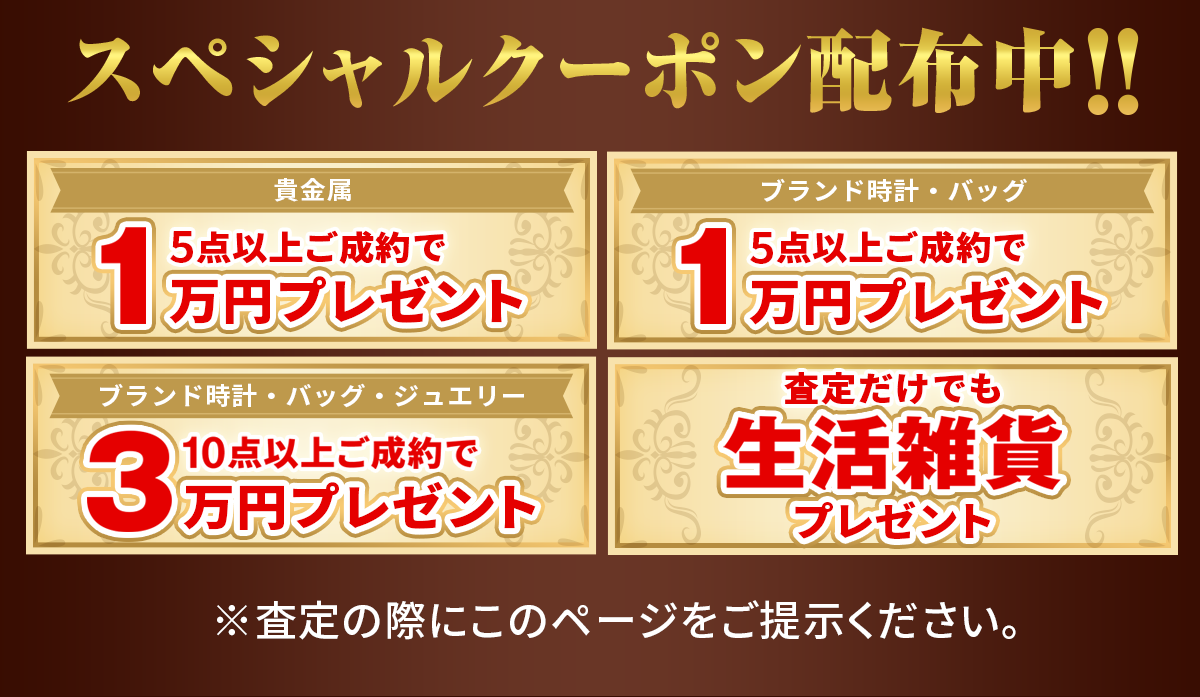 お品物のほかに現在お住まいの住所が記載されている身分証明書をご持参ください。